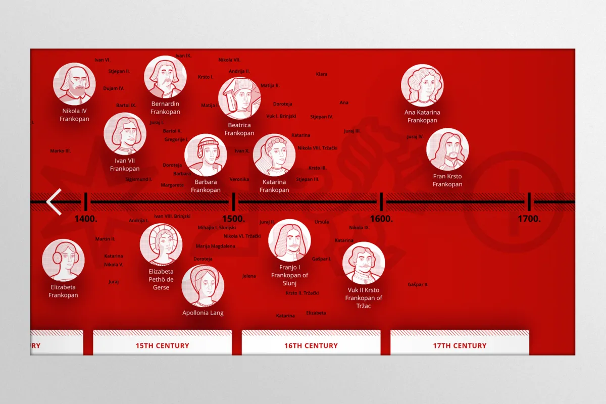 Svaki od osam interpretacijskih centara ima svoju temu – jedan od faseta priče o Frankopanima – obrađenu kroz interpretacijske tekstove, ilustracije, infografike i interaktivne sadržaje.