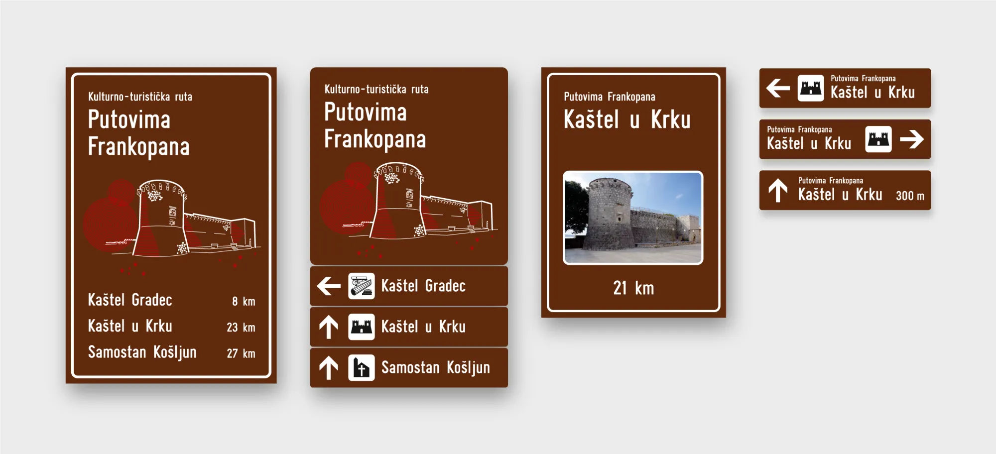 Kompleksan projekt signalizacije povezuje, standardizira i ujedinjava svih dvadeset lokacija na ruti, počevši sa cestovnom prometnom signalizacijom pa sve do interpretacijskih totema uz svaki kaštel.