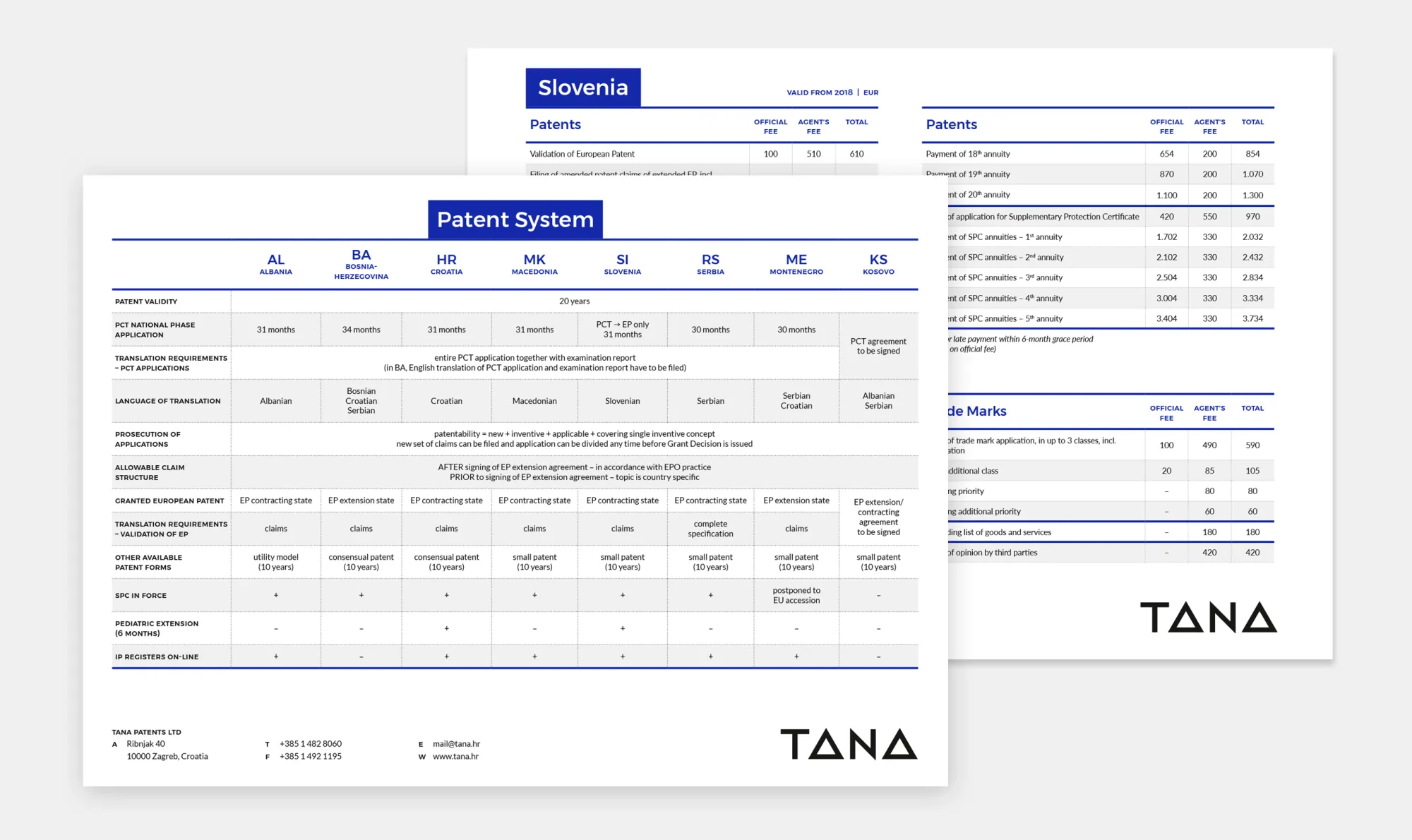 Tana je regionalni lider u zaštiti intelektualnog vlasništva. Preko 25 godina kompanija pruža usluge globalnim klijentima u SEE regiji iz područja patenata, žigova, zaštite dizajna, autorskog prava i parničenja. Filburgu je povjeren potpuni redizajn Taninog vizualnog identiteta i svih primjena, od primarnih sredstava komunikacije preko radnih dokumenata do skroz nove web stranice.
