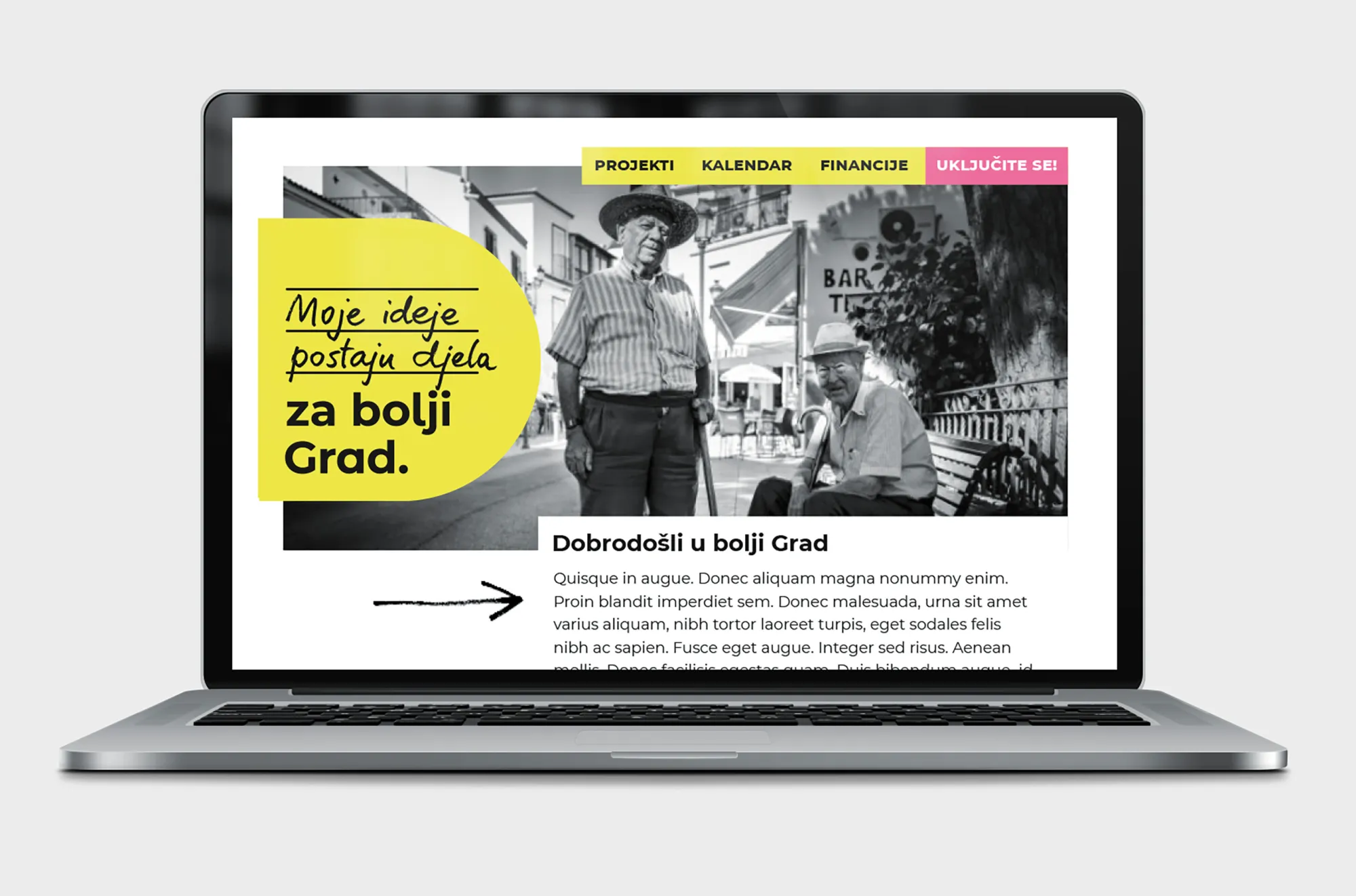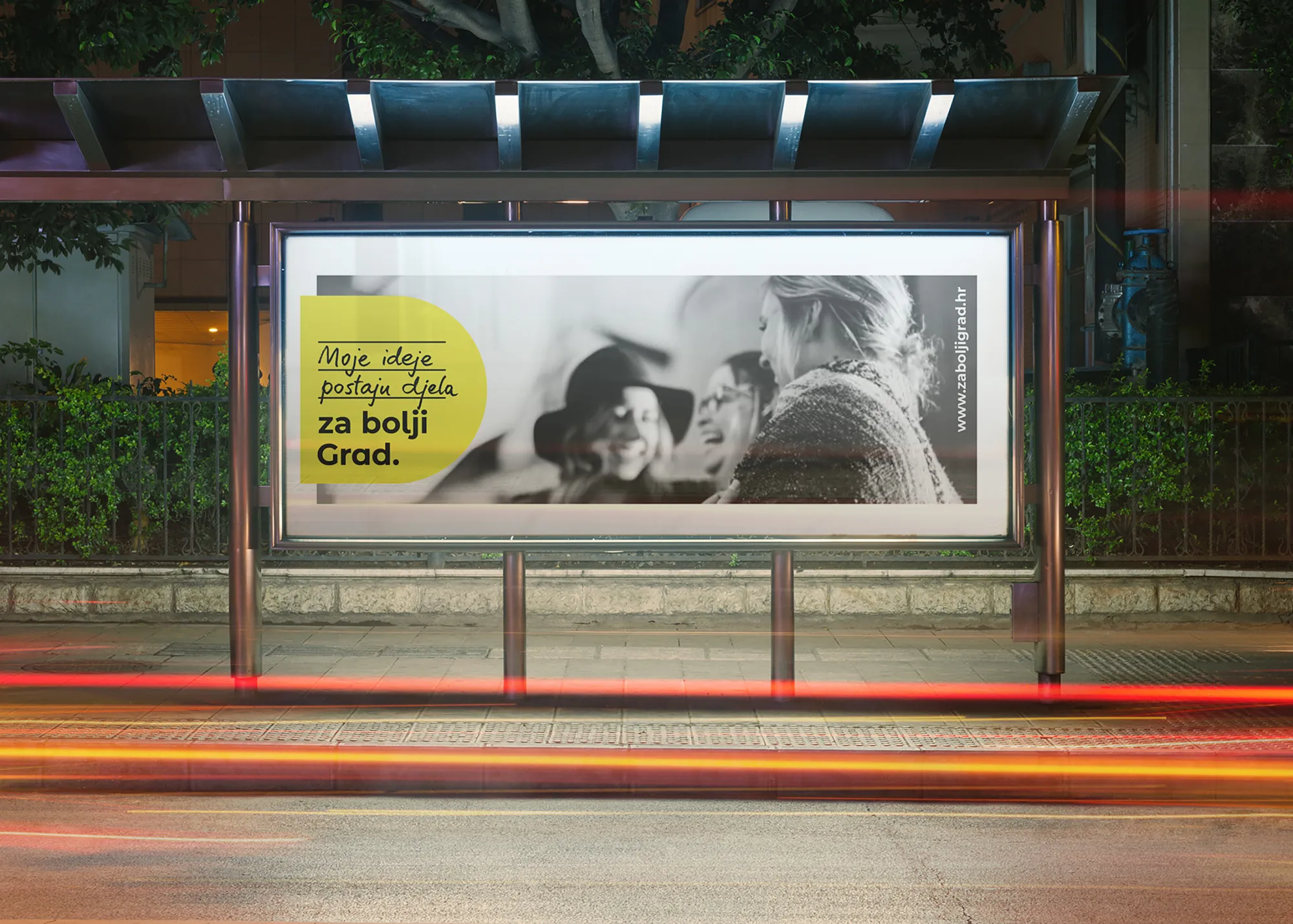 Ime “za bolji Grad” koristi dubrovački lingvistički okvir te je osmišljeno da provocira dijalog i pita: “što bi ti učinila za bolji Grad?” Grafičko rješenje praznim crtama ispred imena projekta potiče na proaktivno razmišljanje koje se događa u stiliziranom polju slova “D”.