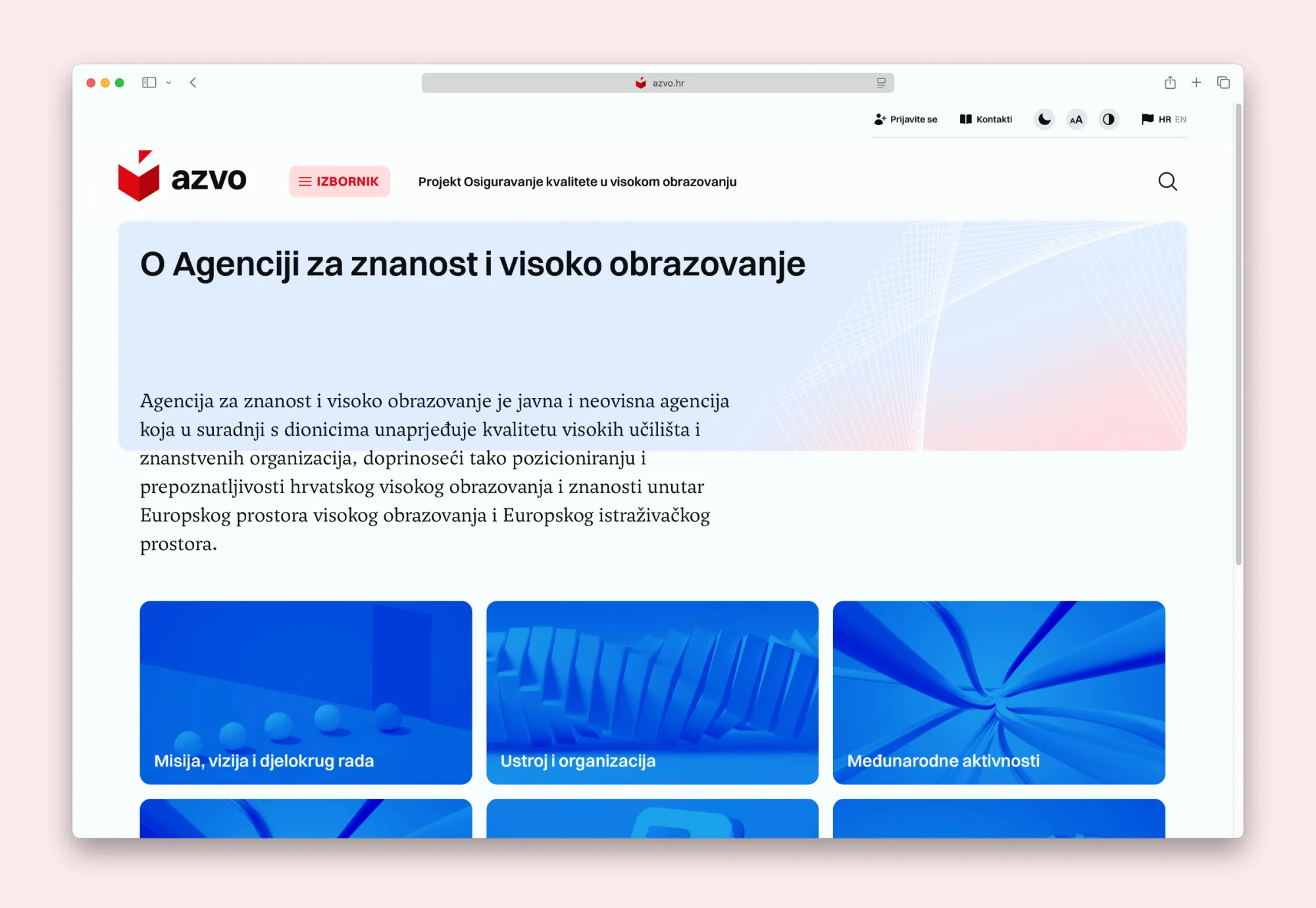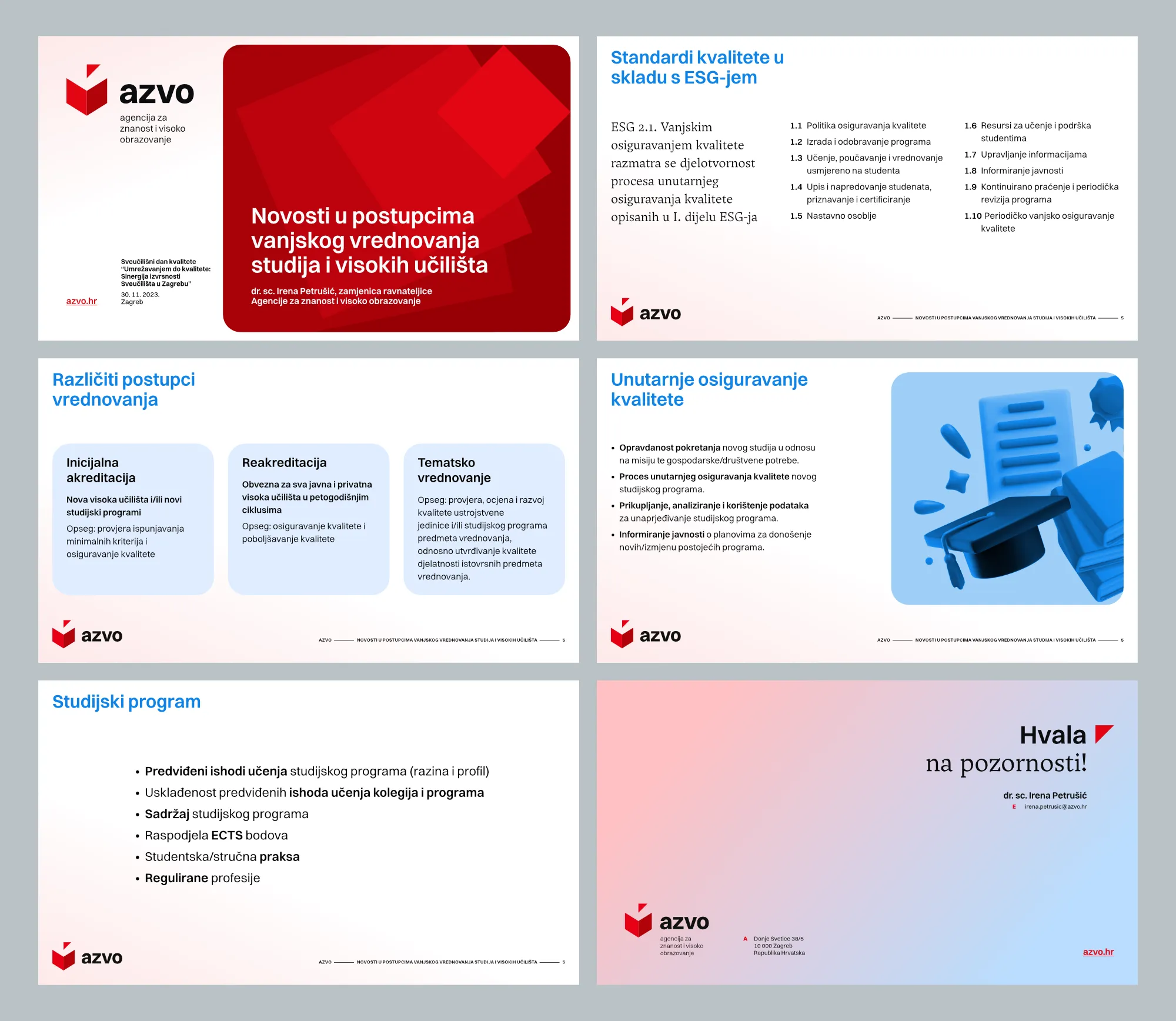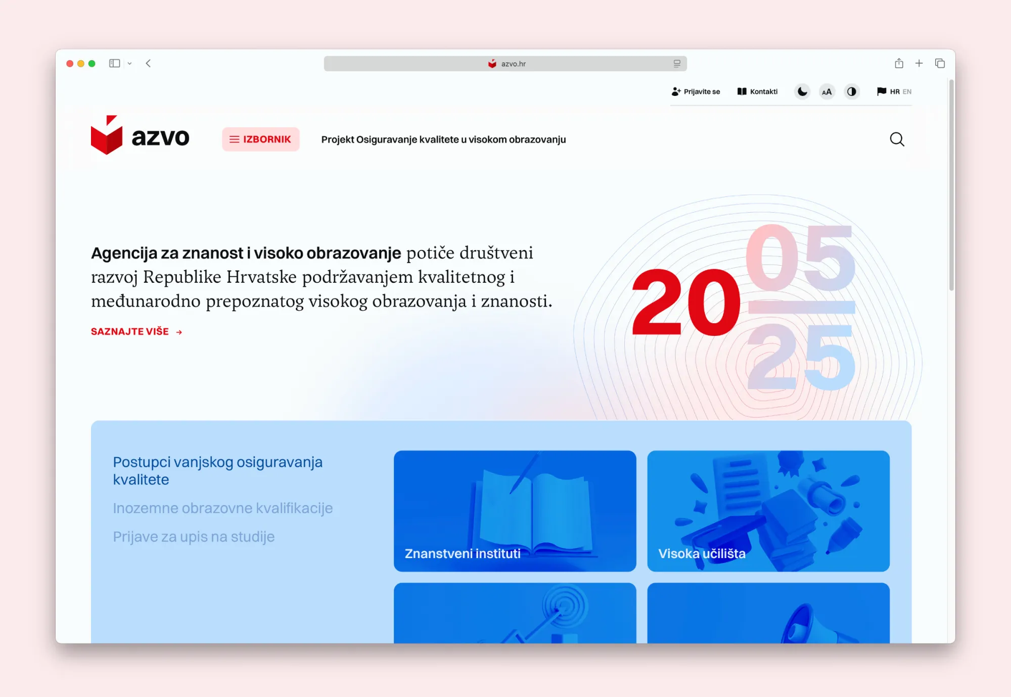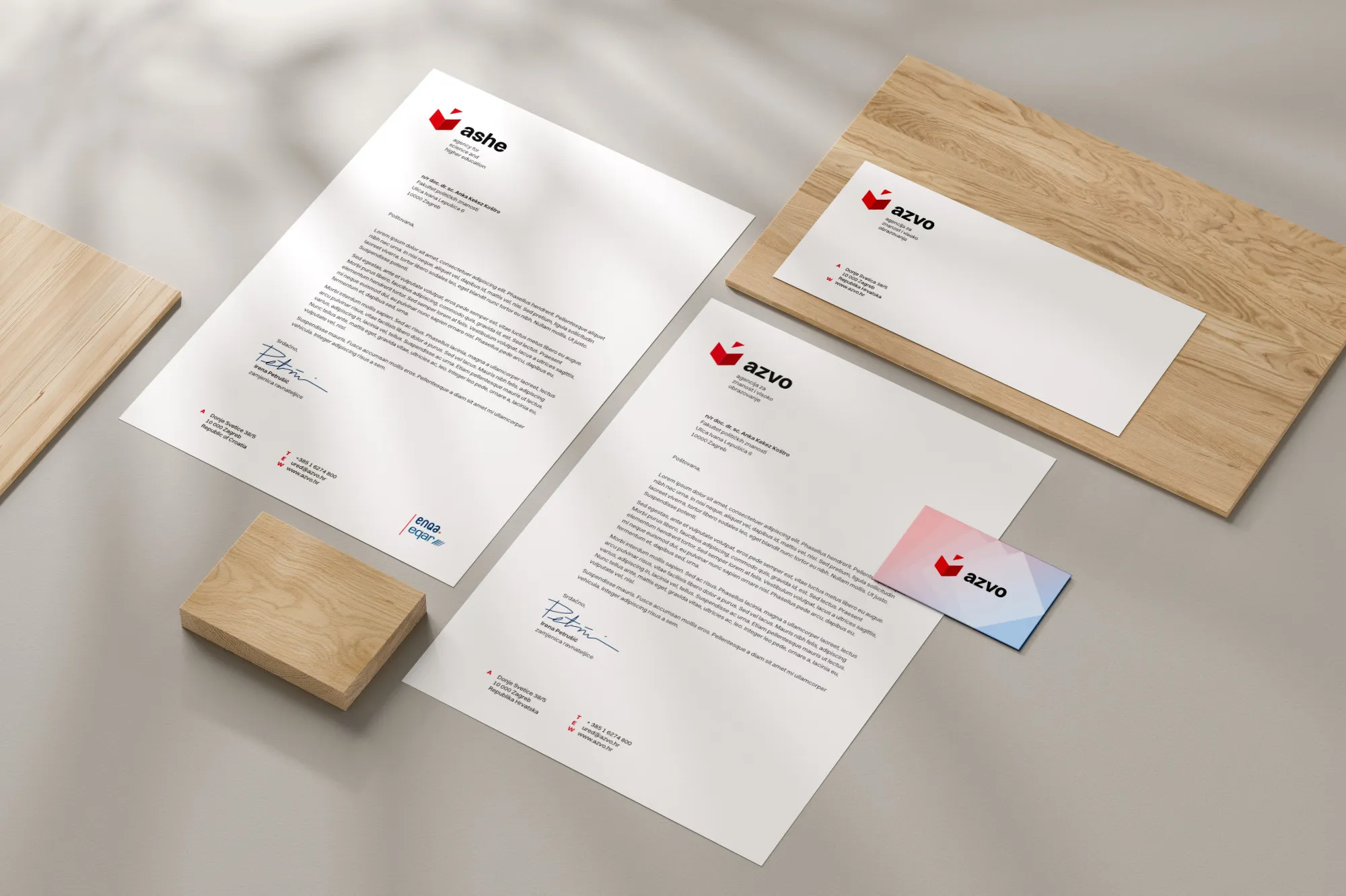 As the Croatian public, independent, internationally recognised body that handles evaluation of academic programs and quality assurance in higher education generally, as well as certification of foreign higher education qualifications, Agency for Science and Higher Education now has a fully integrated visual communication platform that touches every part of their organization, including their website, visual identity, newsletters, office, digital stationery, and even a custom mark for their 20th anniversary.