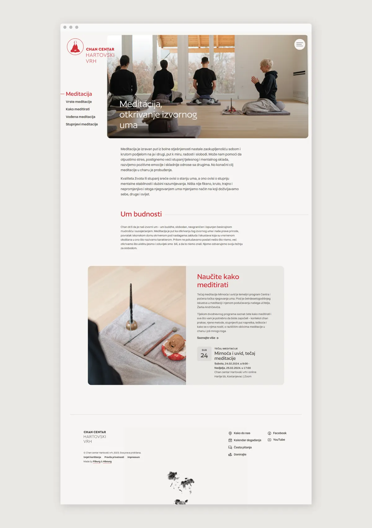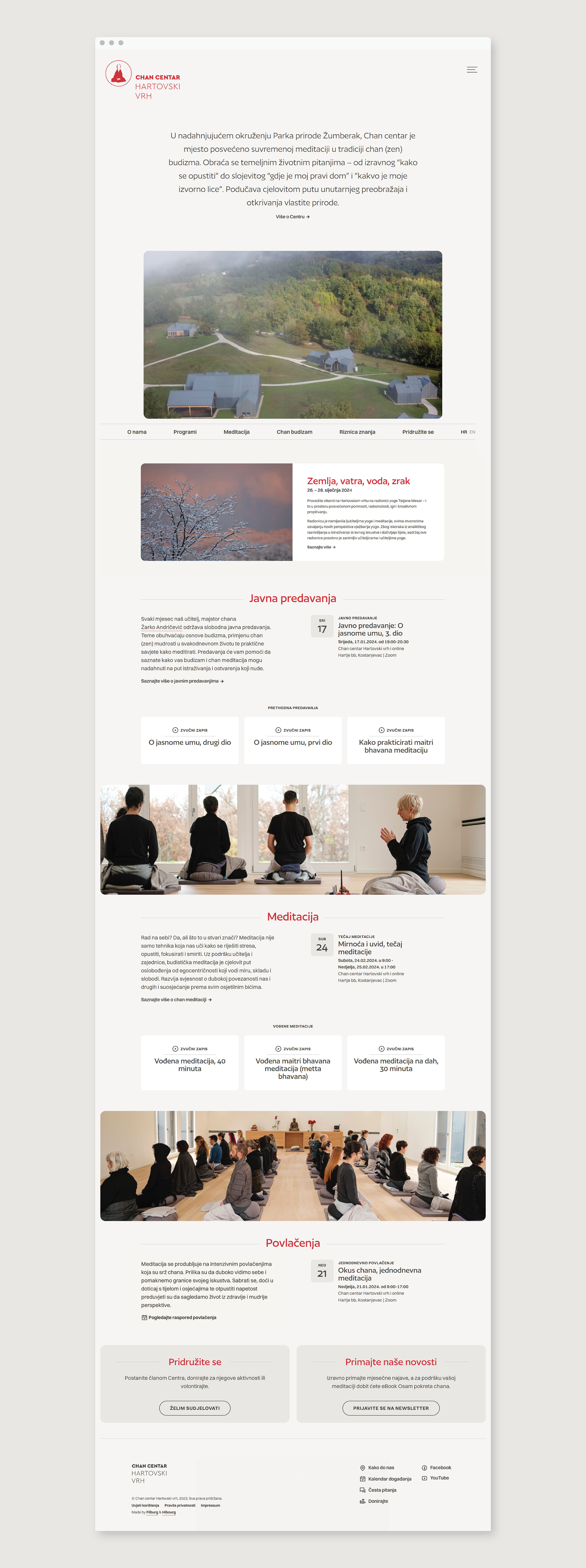 For the international Buddhist organization Chan Centre Hartovski vrh, we designed a new bilingual website that presents various meditation and mindfulness programs for adults and children. In addition to UX and UI, we designed the digital newsletter as well as a series of animations inspired by traditional Buddhist texts.