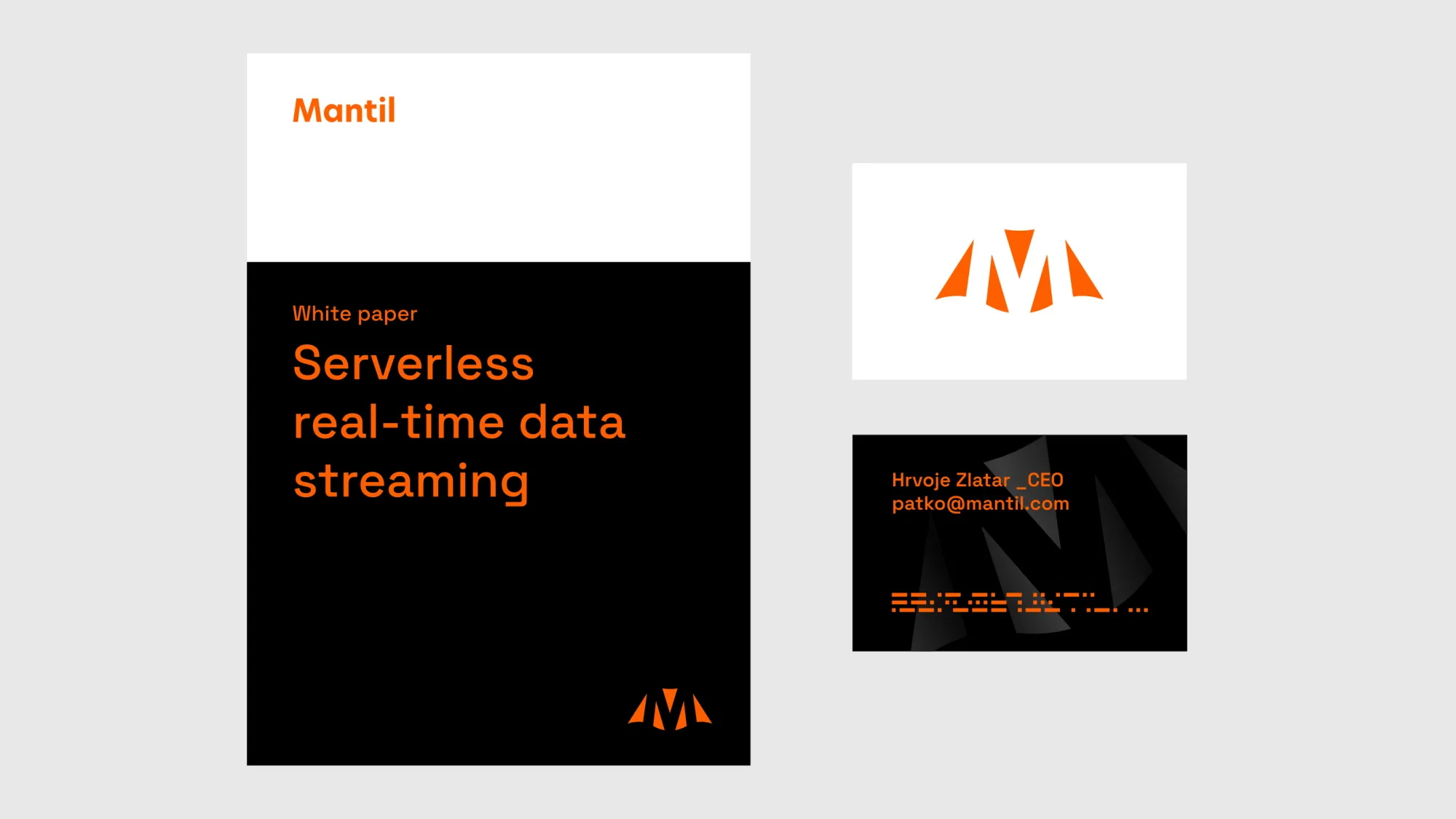 Through branding workshops we articulated the brand narrative and sketched its character. A stylized cape sign in the visual identity manifests exactly that. As a true humble hero, Mantil works from the shadow. In a play of positive and negative spaces, initial letter M appears and disappears, morphing into the torso of a hero. Sign is a key identifier of the brand but within the system other elements appear as well – from abstracted screens to ornamented lines of coded messages – that together make a flexible and highly recognizable whole.